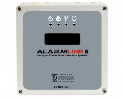 The AACULP is a PC programmable Analogue LHD cable control unit. It provides monitoring, configuration of alarm and pre-alarm temperatures and interface to the main fire alarm or BMS system.